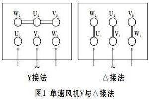 1.單速風(fēng)機接線方法:一般情況下,所配電機功率在4KW以下為Y接法;4KW以上(包括4KW)為△接 法。接線圖如圖1所示: